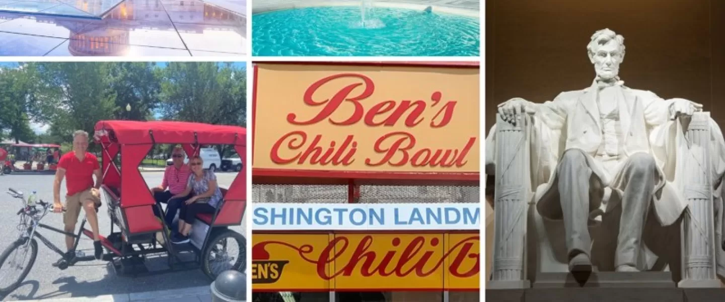 - Day 3 (these tours below do not have to be taken on the same day): See the Monuments and Memorials up close and personal in a Limo Coach Pedicab with your professional tour guide on a 3-Hour Tour, any time of the day or night. We recommend a night tour if your schedule permits. You will visit hidden gems that no other tour will include. You will also enjoy a 3-Hour Walking and Food Tasting Tour on U Street where you will meet your professional tour guide to learn about the history of the U Street District while sampling tastings from locally owned restaurants in this famous neighborhood.