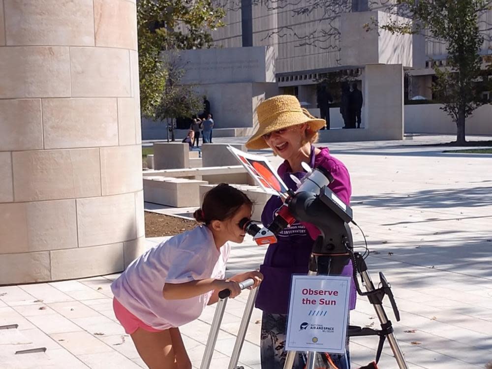Visit the Eisenhower Memorial, located across Independence Avenue from the Museum entrance, to view a variety of features on the Sun. Knowledgeable staff will be there to answer questions and guide observing.