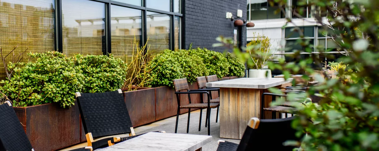 Eaton DC has 209 hotel rooms, a radio station, a 50-person cinema, a wellness center with yoga, meditation and alternative treatments, a coffee shop and juice bar, a restaurant and bar, a rooftop bar, a speakeasy, 10,000 square feet of event space, rotating art exhibits and a co-working club that can accommodate up to 370 members.