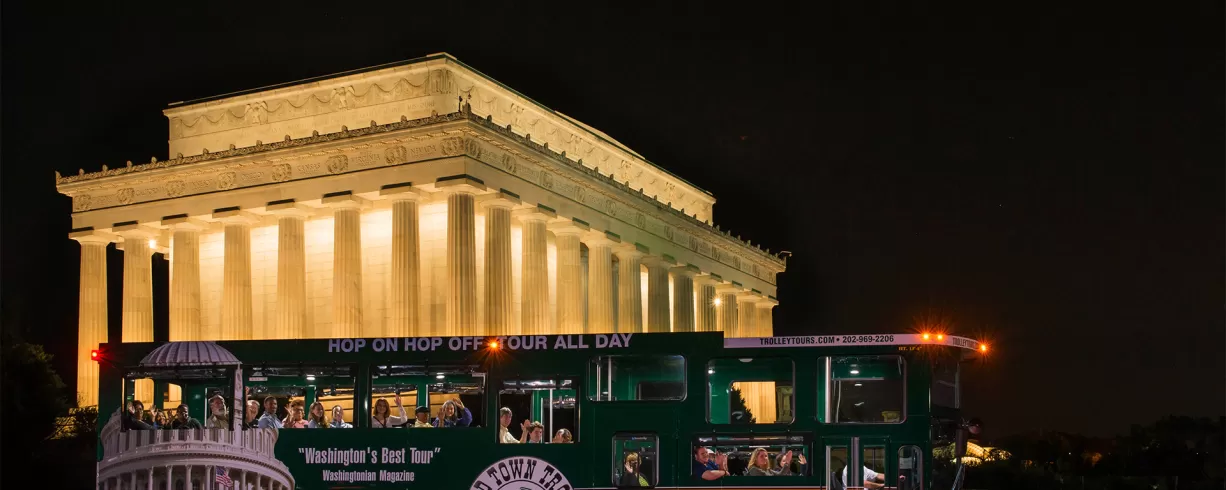 See DC In A Different Light! The Monuments by Moonlight Tour knows just the right way to show off the capital city when the sun goes down. Enjoy a night of moonlight merriment aboard their all-weather touring trolleys with stadium seating. This 2 1/2-hour tour of Washington is fully narrated by licensed tour guide conductors. The tour includes panoramic scenic views and stops at the Franklin Delano Roosevelt Memorial, Lincoln Memorial, Vietnam Veterans Memorial, Korean War Veterans Memorial, and US Marine Corps War Memorial. 100% Satisfaction Guaranteed.