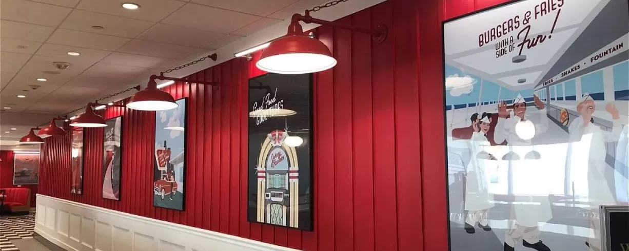Fun atmosphere dining serving hamburgers, shakes and more