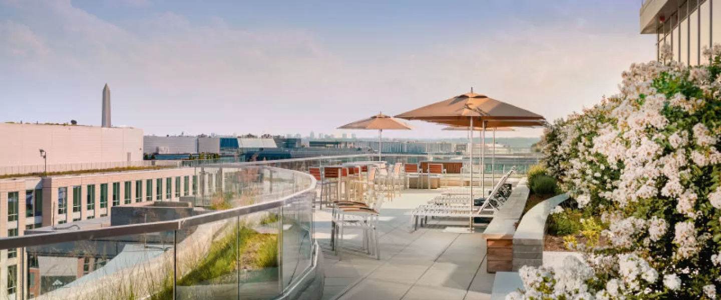 Upscale D.C. venue near the Convention Center with Capitol views, top AV meeting room, luxe lounge, and full-floor rooftop for events.